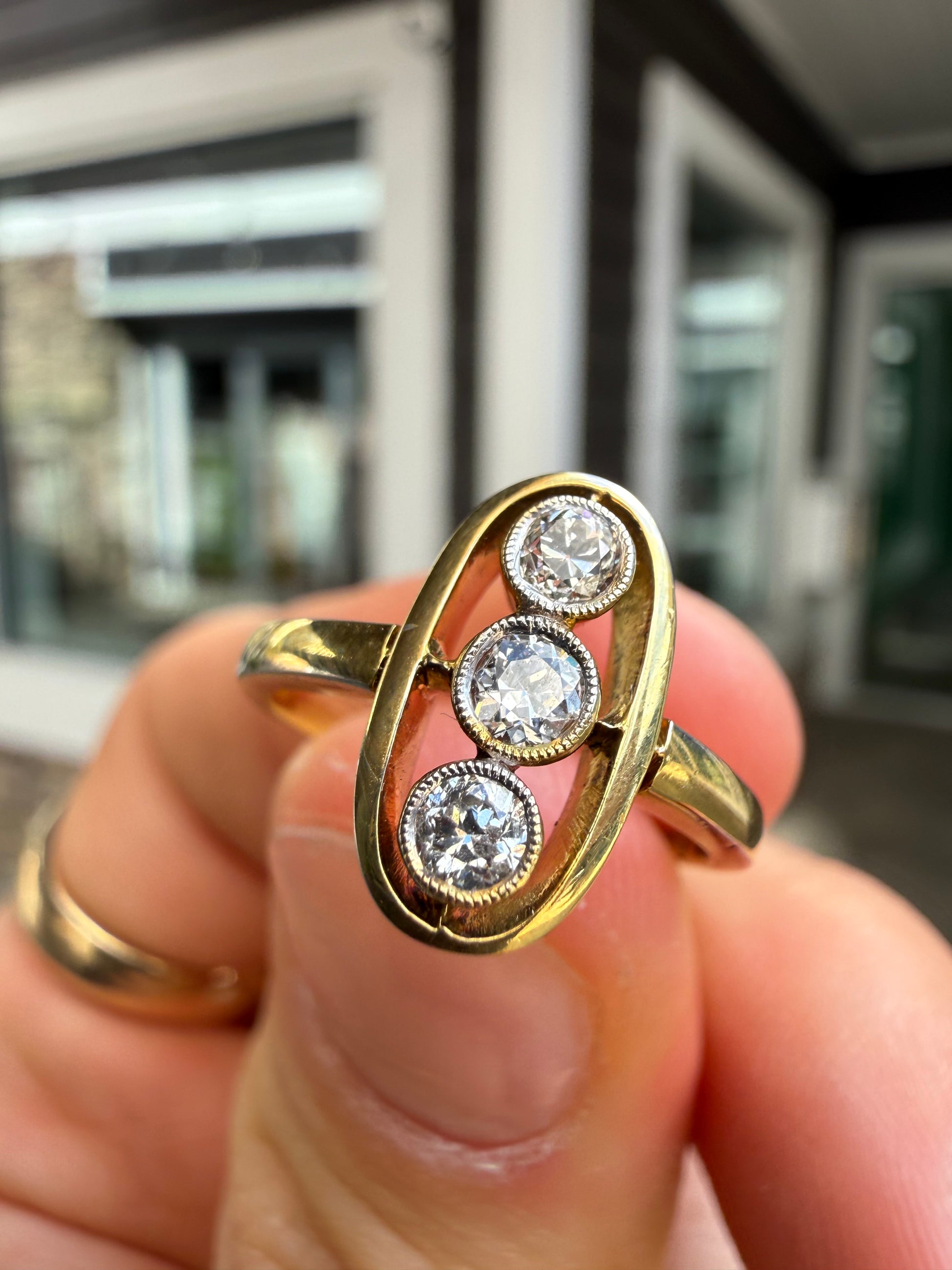 This 14K gold ring may be petite in size but it delivers maximum impact. Set with three sparkling diamonds in a stoplight-inspired design, she has a playful energy that feels modern and bold. Perfect for stacking or wearing solo, she’s a little piece of power that turns heads and adds instant attitude to any look.