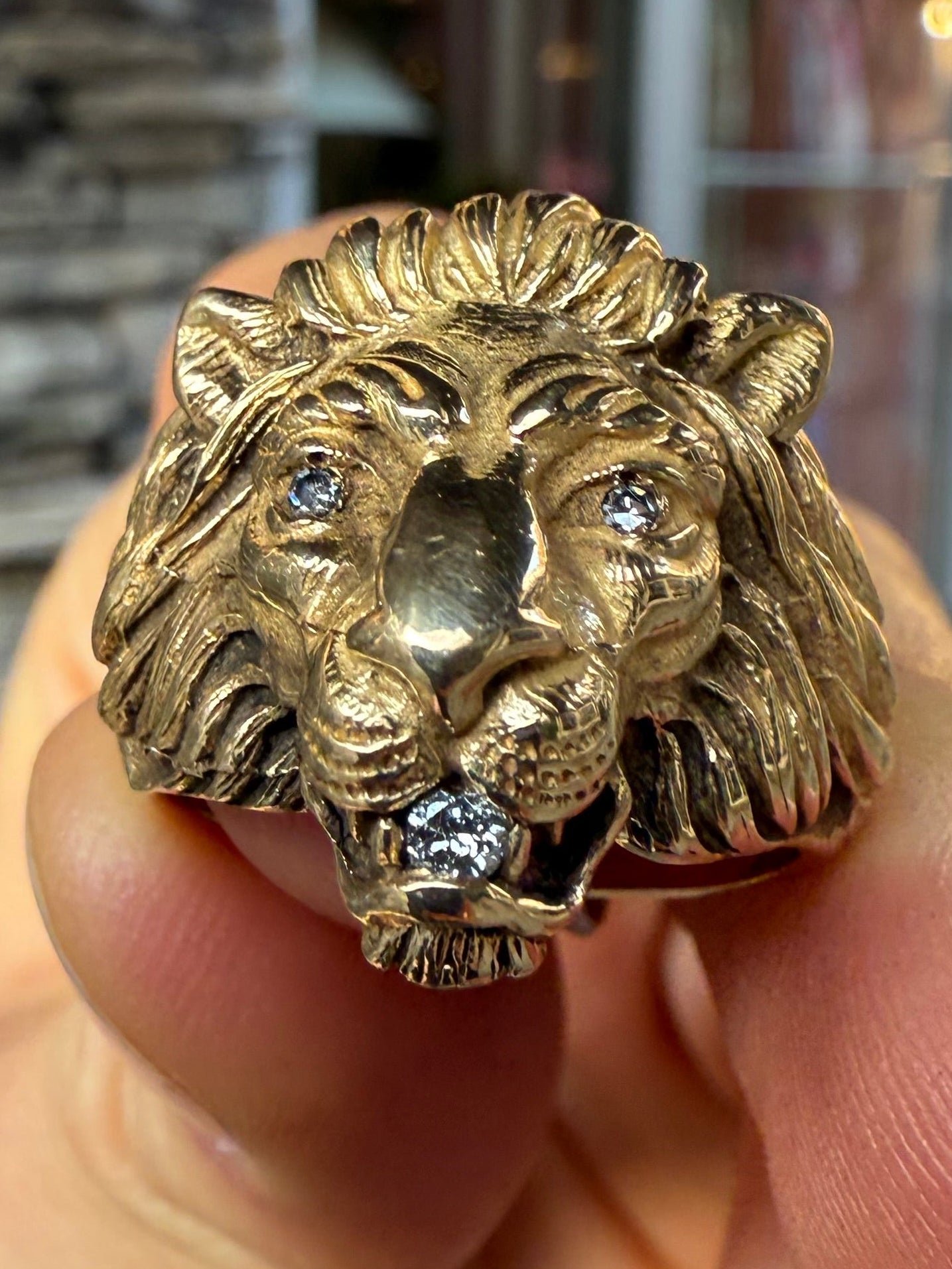 14K Diamond Eye and Mouth Lion Ring
