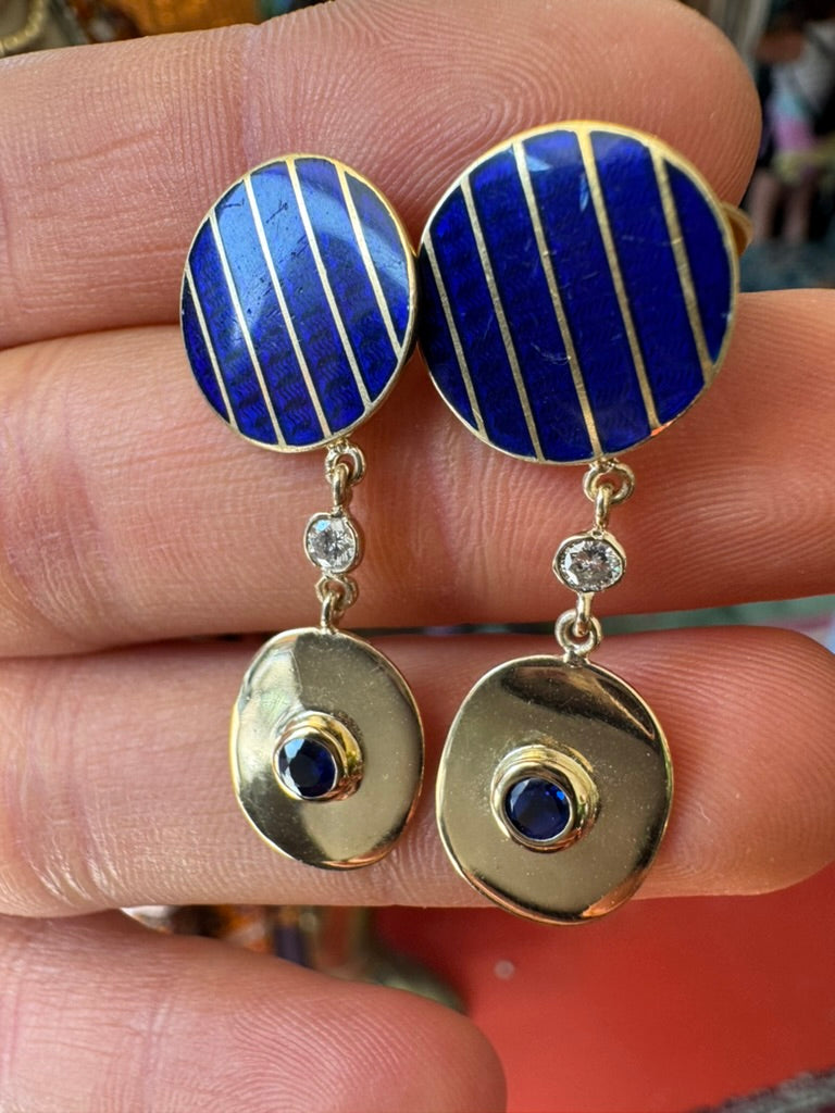 Boucles d'oreilles en émail, saphir et diamant 14 carats